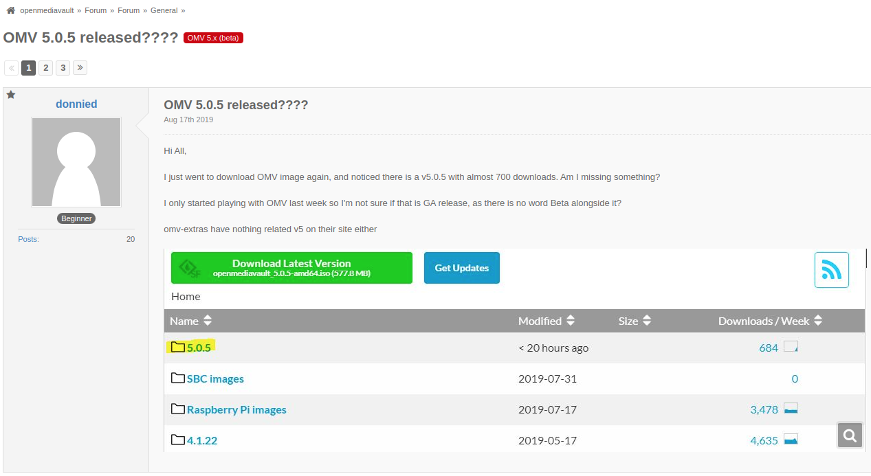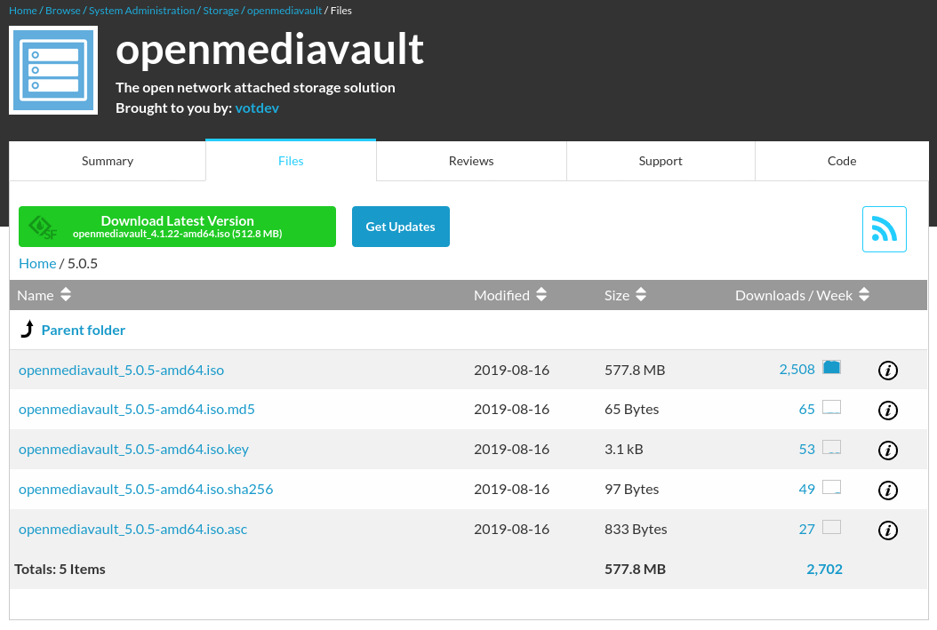 OMV 5.0.5 버전이 OMV 다운로드 페이지에 나타났습니다.