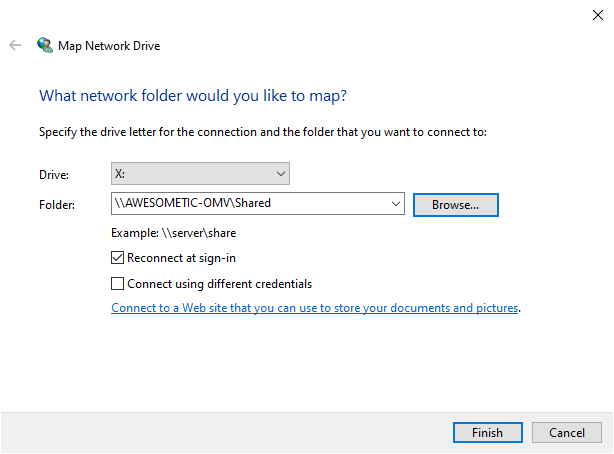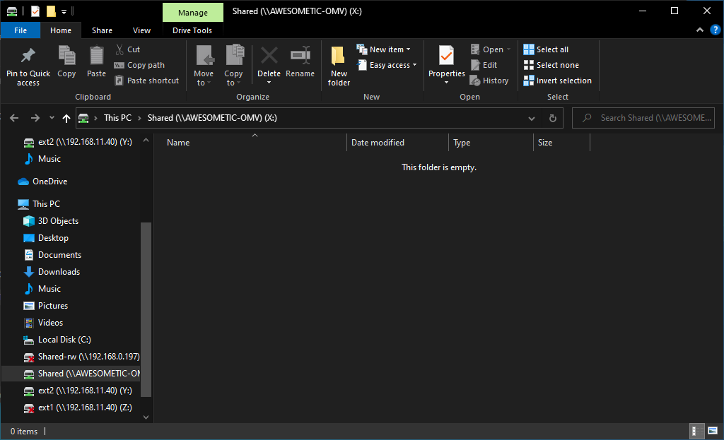 윈도우 10 탐색기에서 네트워크 드라이브를 추가해 OMV Samba 서버로 쉽게 접근할 수 있습니다.