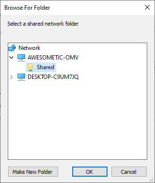 해당 공유 폴더를 클릭한 후 확인 버튼을 눌러 빠져나옵니다.