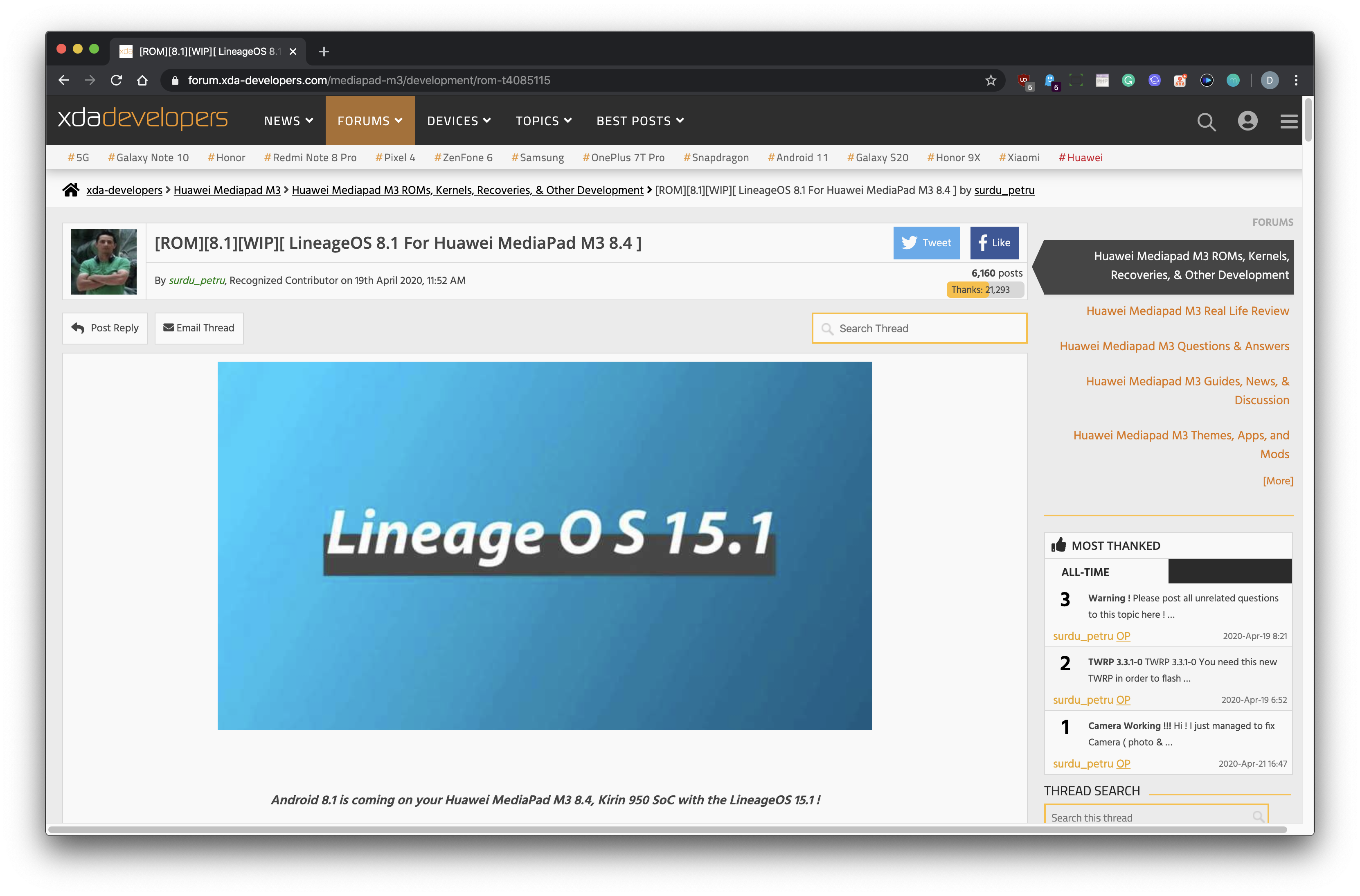 surdu_petru 라는 XDA 인증 개발자인데, 아직도 미디어패드 M3에 커스텀롬이 올라가길 바라는 사람이 있냐는 게시글입니다.