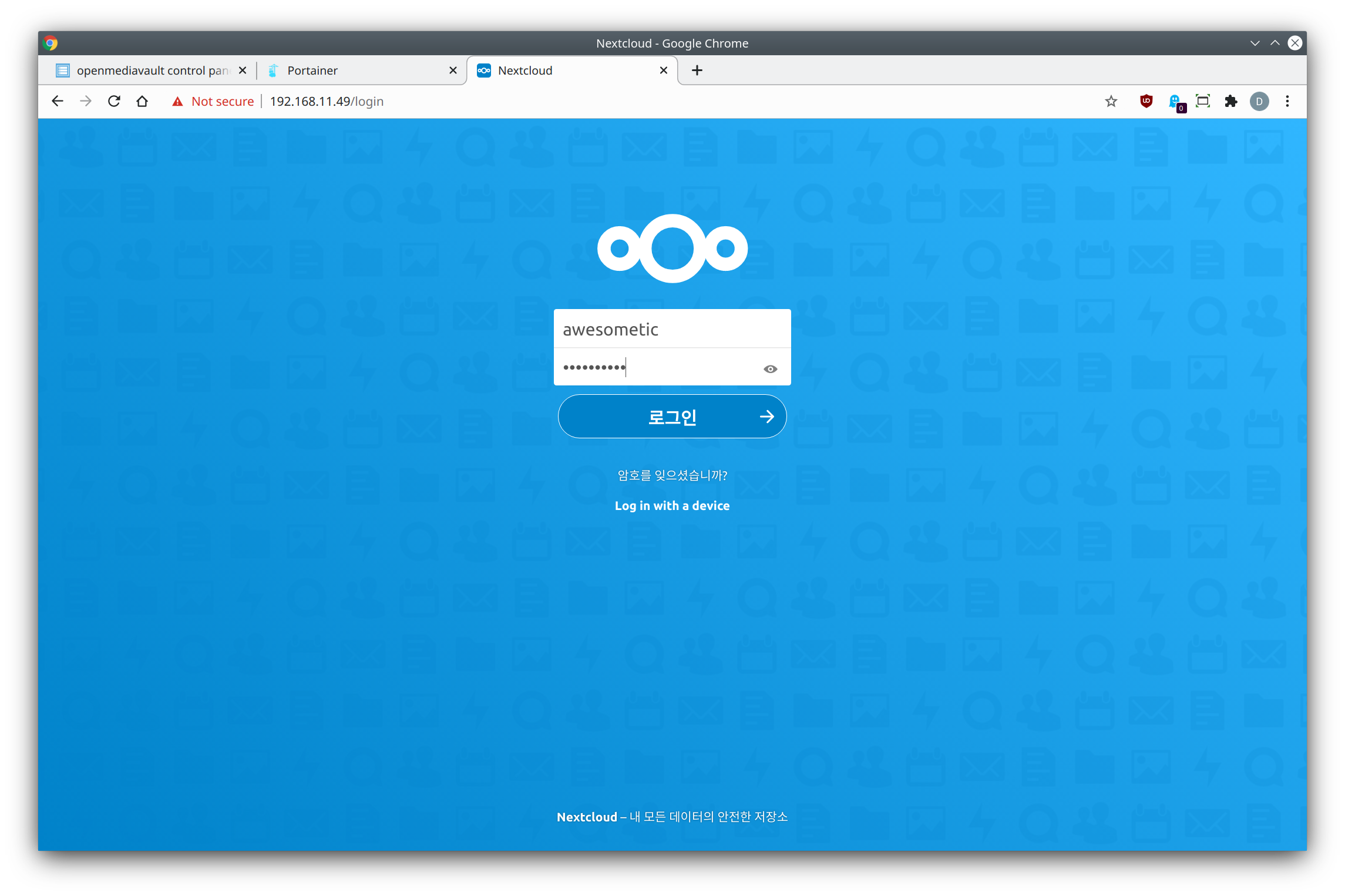 이제 Nextcloud 서비스에 접속할 수 있습니다.
