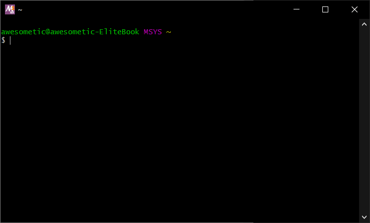 MSYS2 에서 제공해주는 기본 터미널입니다. mintty 라는 귀여운 터미널인데, MSYS2가 기본적으로 MinGW를 포함하기 때문에 GNU Bash로 돌아갑니다.