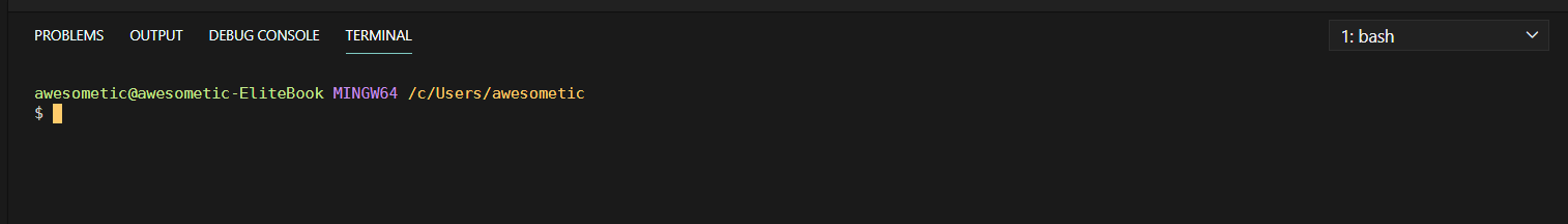 이제 VS Code를 다시 시작한 후 터미널을 열어보면 아래처럼 MSYS2 Bash로 잘 실행됩니다.