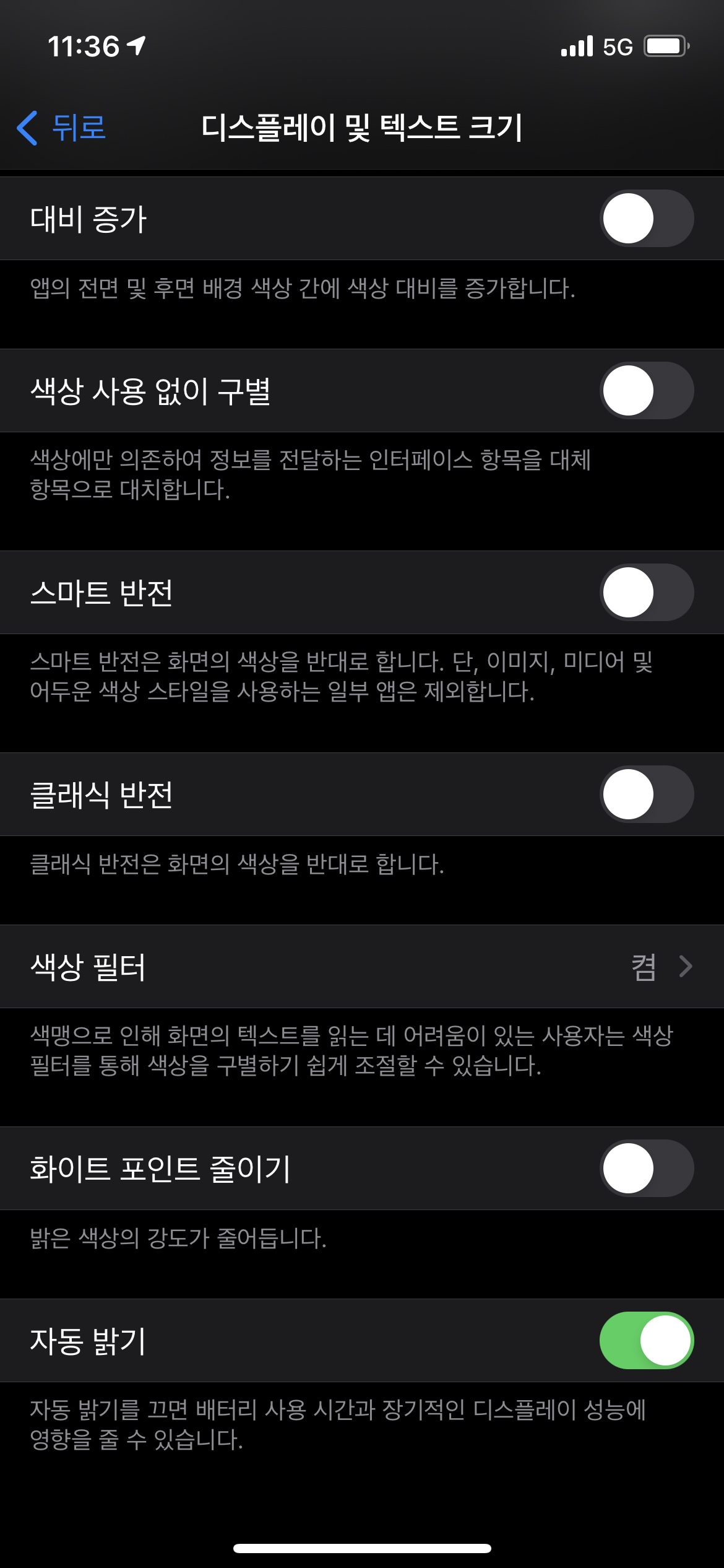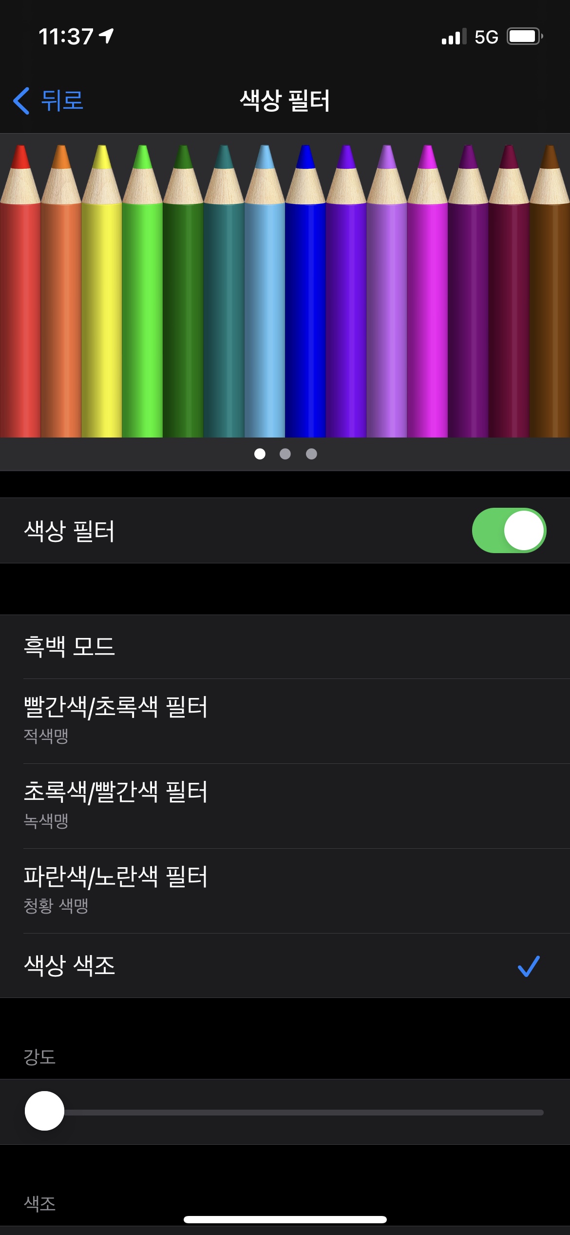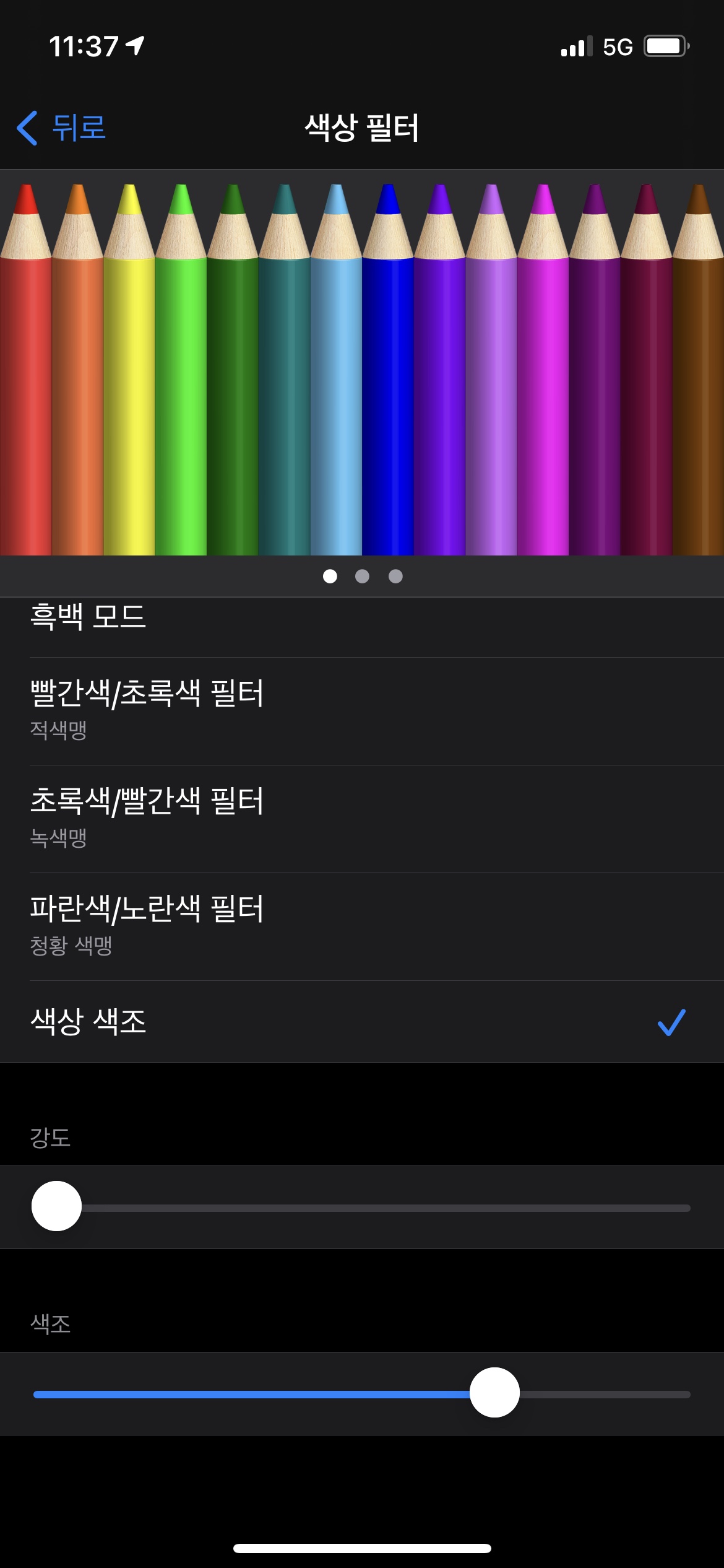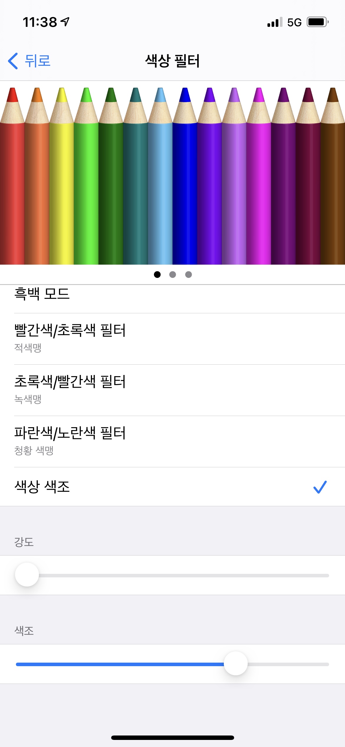 다행이도 iOS에선 색상 필터란 기능이 있어 저희가 직접 교정할 순 있어요. 저도 이렇게 사용 중입니다.