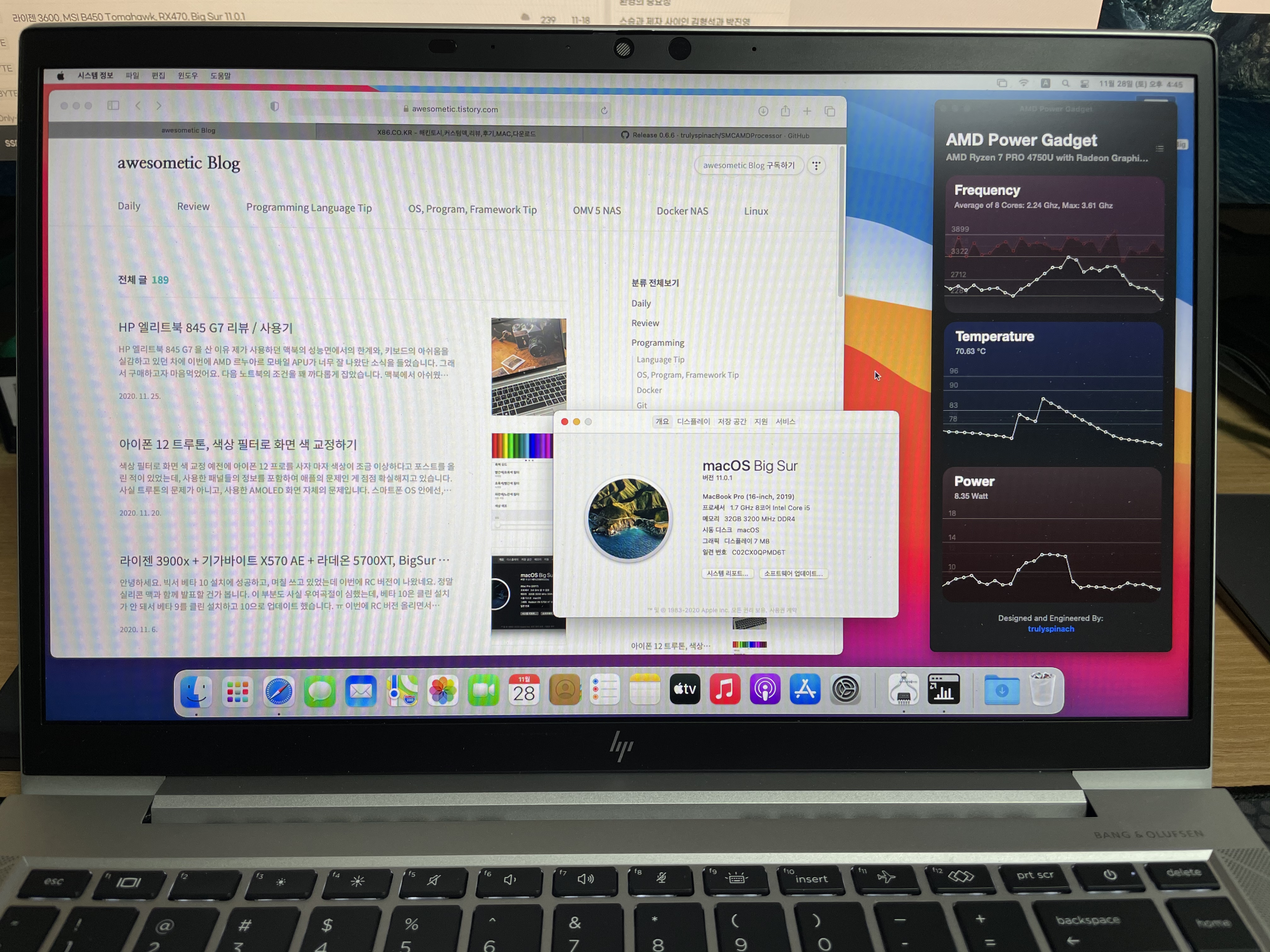 요샌 인텔 Wifi + 블루투스용 Kext도 있어서 인터넷도 무난하게 잡히는 것 같습니다. 신기한 건 AMD Power Gadget 툴도 제대로 CPU를 인식하더라구요. 개발자가 르누아르 APU는 고려하지 않았을 것 같은데? 범용으로 동작하게끔 잘 짠 것 같습니다.