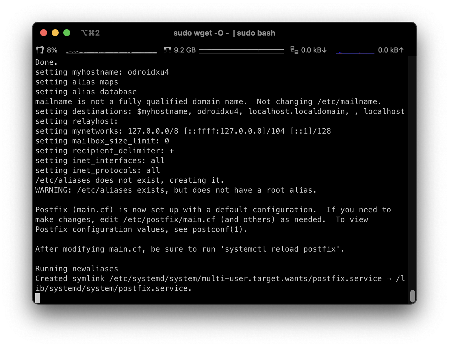 아래 명령어를 입력하여 자동으로 OMV 6를 설치하고 설정해줍니다. OMV 6가 꽤 큰 프로젝트이기 때문에 설치 시간이 오래 걸릴 수 있습니다.