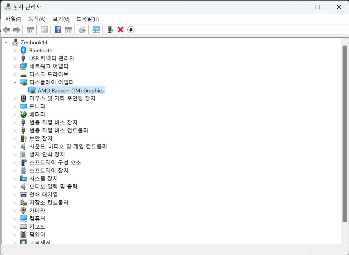 라이젠 5625U 가 달린 보급형 노트북인데, 윈도우를 설치할 때 역시 자동으로 그래픽 드라이버까지 잡아주더라구요. 윈도우 11은 참 사용하기 편하죠.